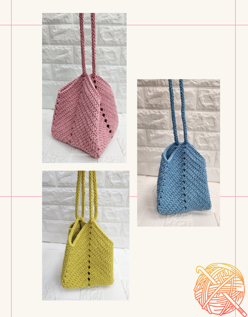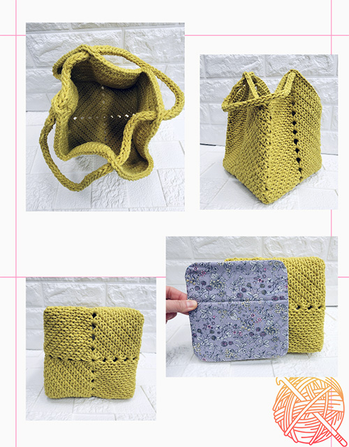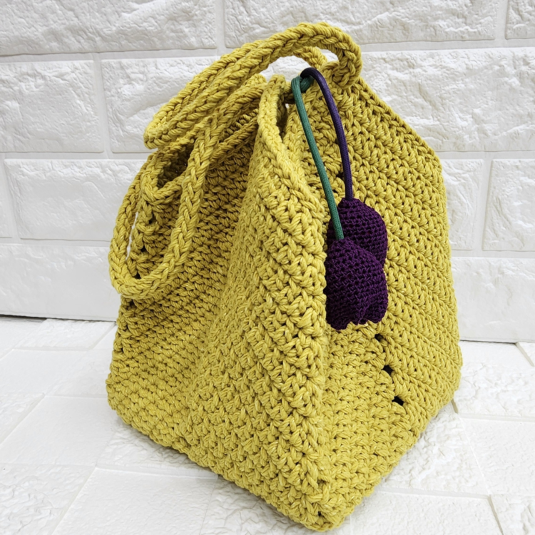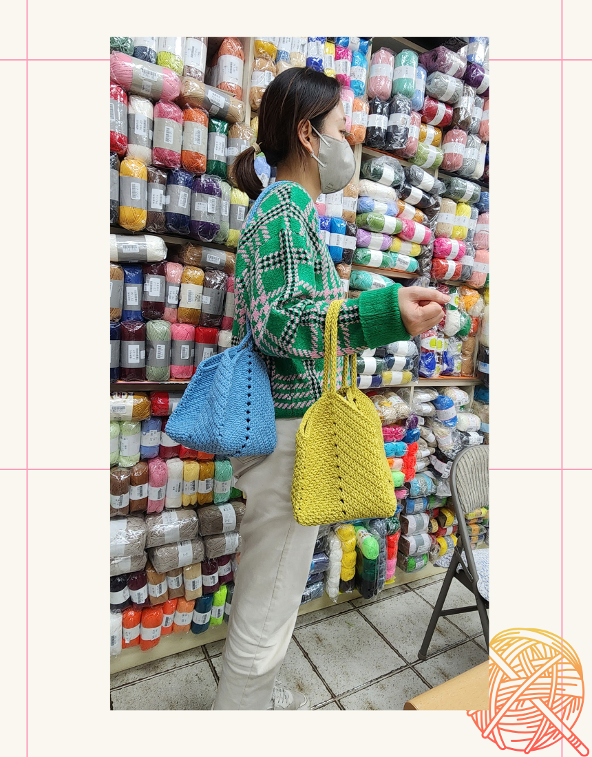 굵은 실로 한땀 한땀 뜬 정사각형 바닥의 백,